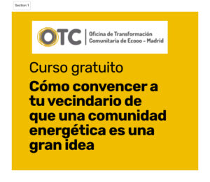 Nuestros compañeros de la OTC Ecooo organizan un curso gratuito sobre cómo dar los primeros pasos para la constitución de una comunidad energética