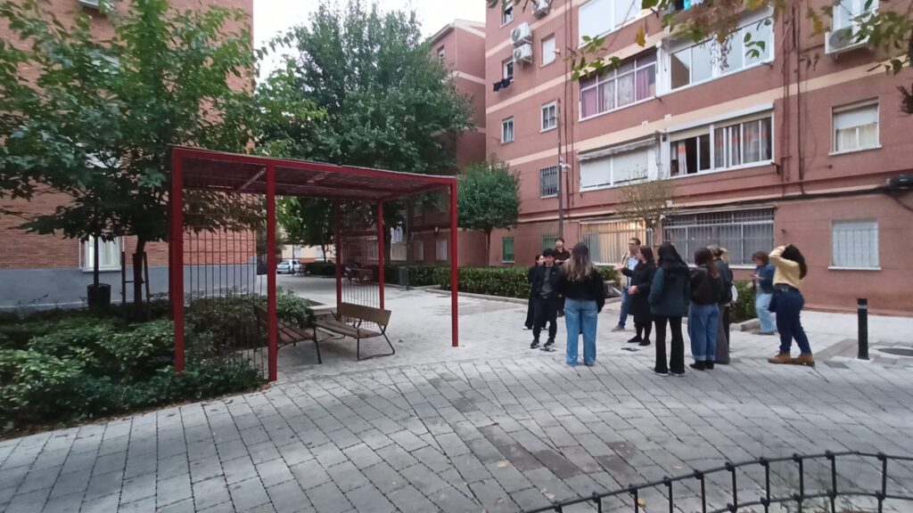Durante la sesión, Ana Sanz presentó el proyecto EPIU y profundizó en la actuación piloto del refugio bioclimático construido en la Plaza Alhelí-Hortensia, en el barrio de Las Margaritas. Posteriormente, el grupo visitó el espacio para conocer de primera mano las soluciones implementadas y su impacto en el confort térmico y la habitabilidad urbana.